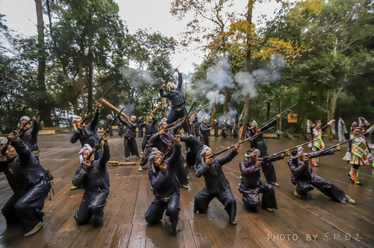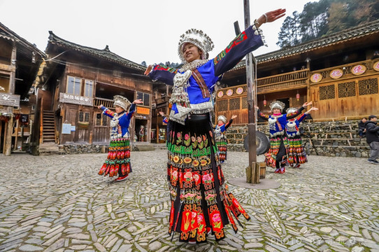 下午:前往全国重点文物保护单位,奥运圣火走过的地方郎德苗寨,体验苗寨文化;