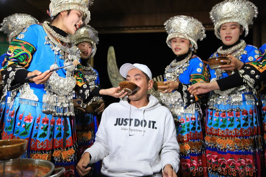 侗年活动之一的迎宾酒就在这里举行,身穿侗族盛装的少女,合唱山歌,然后游客送上迎宾酒。