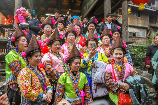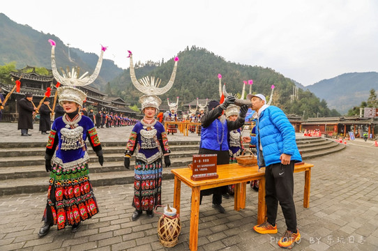 感受别具风情的侗族新年,月也就是集体游乡做客,这是侗乡一种社交习俗,就是侗族某一村寨的男女穿上节日在盛装,到另一个侗寨做客,期间会对歌,这也是侗族男女找对象的一种方式。