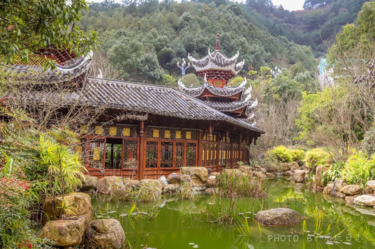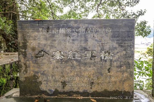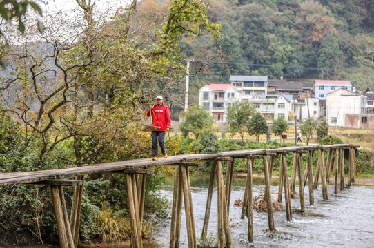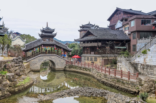 桥四周奇峰峻石,林木苍郁;河流两岸山光水色,如诗如画,风光迷人。