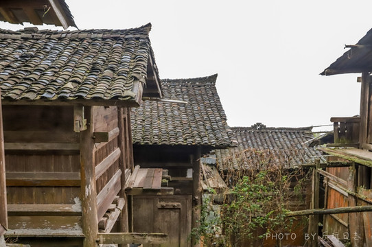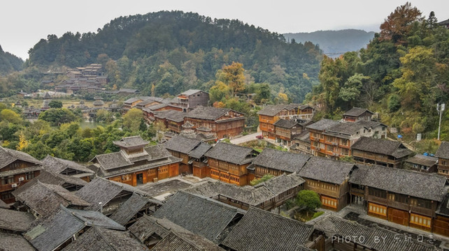 给我的第一印象,这里的建筑很有民族特色,房屋密密麻麻均布在山谷中,寨子两边都是森林,而中间的村寨内,全是这种灰瓦黄木楼,河边还有一些的疏密有致的吊脚楼,侗族鼓楼间插而中,高低不一,风格各异,非常好看。