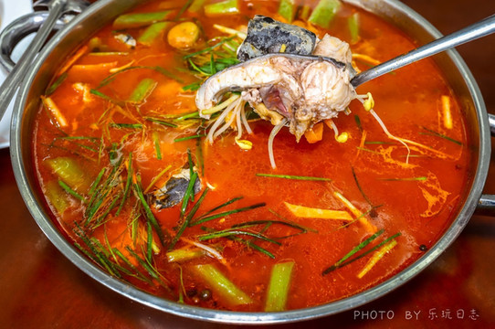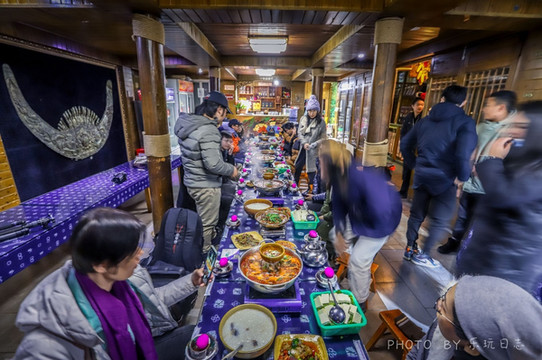 年夜饭长桌宴的主菜,牛瘪火锅,这是来肇兴必吃的美食,也有很多人称它为暗黑料理,但我是觉得挺好吃的。