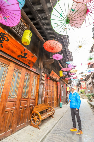 我们订的民宿在侗寨景区里面,从游客中心到景区内,可以步行,也可以乘坐电瓶车,我第一次来,选择边走边看的方式,拖着行李箱,慢悠悠地走在大街上。