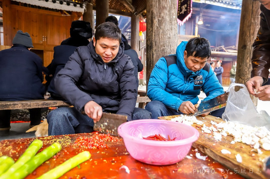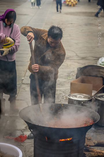 其它族人也在紧张地准备着,有的男人负责炒菜。