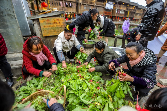 女人们就围在河边清理红萝卜,侗族人民认为在五谷丰登、一切农耕事务完毕的秋后,便是劳作的一年已经过去,新的一年到来的时候,这也是侗年的由来。