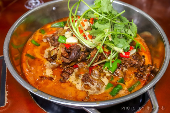 这种牛瘪火锅主要是制作很特别,因为他是用牛胃没有完全消化草料的胃液,来制作成火锅的底料的。