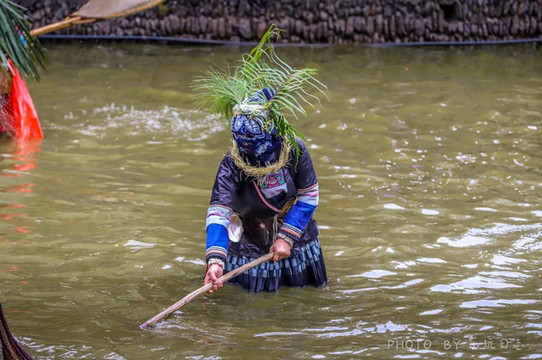 寨门前面的稻田,也是摆拍的一个好地方。可以用后面的吊脚楼做背景。
