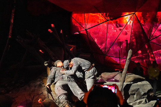演出一共分上下两场。《红飘带·伟大征程》由无名英雄、血火洗礼、伟大转折、砥砺征途、胜利丰碑以及新时代新长征六个篇章构。最棒的是利用AI虚拟交互、全息影像等先进科技手段,结合现场真人表演,引领大家一路跟随,行进式互动、剧场式观演、沉浸式体验……所有场景与人物如同真实再现,仿佛穿越到了那个时代,就在馆内重走了一次长征路。让所有人全程都被深深吸引,也真正实现让传统的红色教育从平面书本走向立体体验,所以留下了令人难以忘怀的印象。