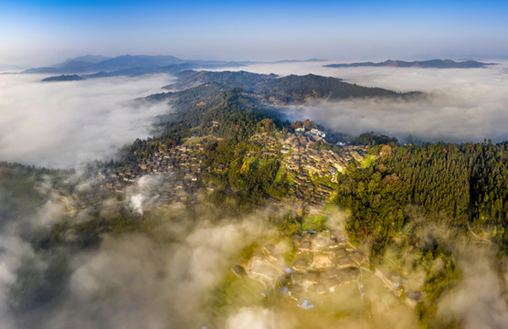 这里太适合找一家山腰木质民宿,早上在青山云雾间,看寨子炊烟袅袅,