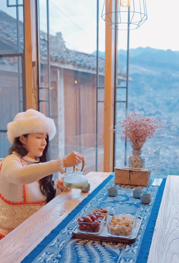 下午慢慢泡上一壶茶看云起云落,日落霞光漫天。华灯初上时,流光溢彩的苗寨,灯火璀璨, 远眺万家灯火,漫山星光,满眼星河尽在眼底。
