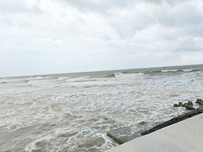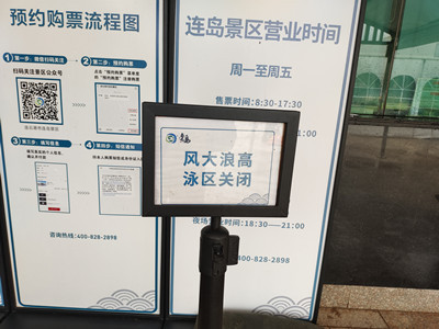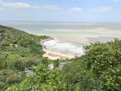 天亮了,起床直奔我期望已久的大海,我的大沙湾,到景区门口,扫码买票50元/人(这里和日照的区别是进入浴场是需要购票的),忽然看到一个牌子上写:风大浪高,泳区关闭。天气很凉,我的心更凉。