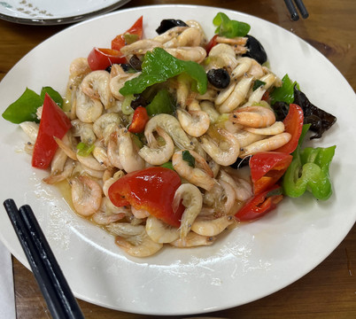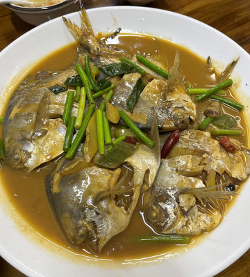 我俩都属于比较简单的人,晚上又去了对面同一家本地菜馆,主要昨天看了一下食材,还有很多没吃到。今天点的是椒盐小海虾,酸菜牛肚(事实证明海边的菜馆烧辣真的不太行),海葵做了一大份汤,我们尽量喝完了,吃货不能浪费,然后又是一种特别懂事的鱼,海鲳鱼,鲳鱼也是真的好吃。菜都不踩雷。椒盐小海虾和海鲳鱼都可以考虑加入家庭菜谱!