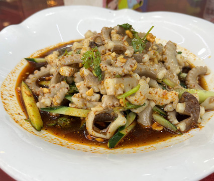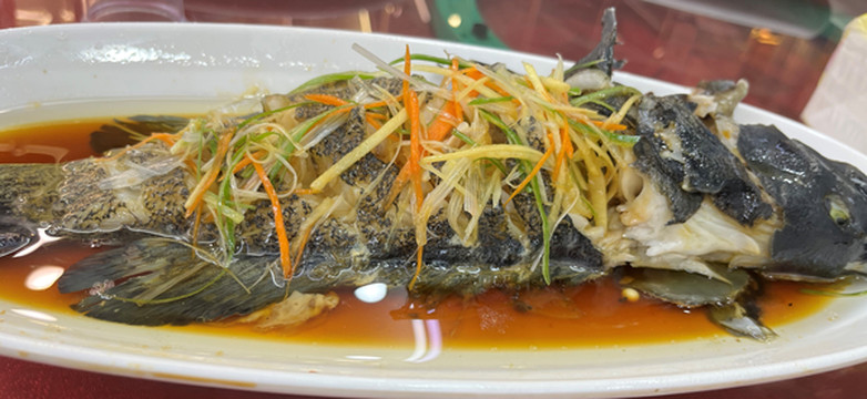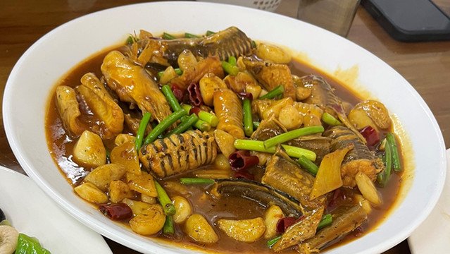 第二天的午餐是去酒店对面一家本地菜馆,一般来说本地的家常菜,味道不会差的,且符合当地人的口味,非常适合感受当地的风土人情和饮食习惯。实际确实也是如此。我看到号称特别难喝的饮料---崂山白花蛇草水,特地买了一瓶尝了一下,其实还好,就是不太常喝的一种味道,有一点草药味,还加了二氧化碳,不太好喝,也不算很难喝。还点了小海虾,茭白炒肉,红烧海鳗。可能是偏南方饮食习惯,都点的是或炒或红烧的口味。鳗鱼和鳝鱼可是两种完全不同的鱼,鳗鱼属于鳗鲡科鳗鲡属的鱼类,鳝鱼属于合鳃目合鳃鱼科的鱼类,因为长得像,所以常被弄混淆,以下来自胡椒先生的口述:鳗鱼是口感偏肥厚,肉质鲜嫩,红烧蘸汁非常好吃,而且鳗鱼是很懂事的鱼,没有什么鱼刺!味道稍微淡了一丢丢,可能是怕我们等得着急,还可以再烧两三分钟。总体评价:中等偏上!记得记笔记啊~(已记)鳝鱼呢,主要生活在淡水和咸水的交接处,烧起来会偏辣一点。鳝鱼的肉质也干瘪一点,同样鲜嫩。下次吃的时候再记录。