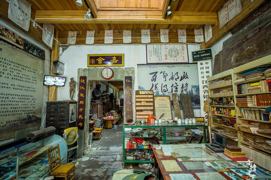 纸业同心馆原是石塘古镇最著名的纸行——裕康号,如今辟为展馆,讲述着石塘纸都的历史故事。暗黄的灯光从门内透出,还未进入就已感受到了浓浓的历史氛围。