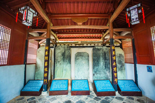 书院内收藏有许多明清时期的石匾和碑刻,其中明代碑刻6通,清代碑刻8通,内容各异,以重建书院碑记为主,一路看下来,鹅湖书院的历史也一目了然。