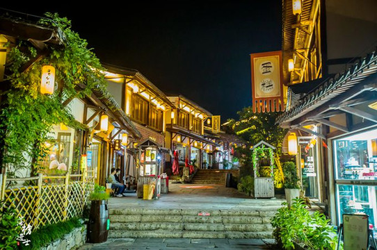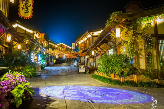在灯光的装点下,古朴的建筑散发着神秘色彩,像极了某个电影里只存在于时光之外的小镇,有种遥远而美好的风情。