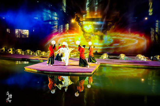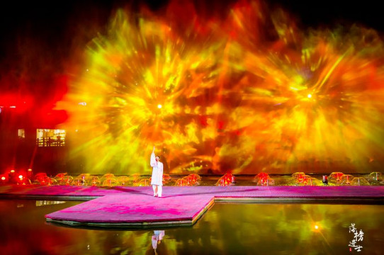 山脚下的梦幻水幕电影《归真记》正在上演,演出依山傍水,演绎了仙人葛玄一生的故事。