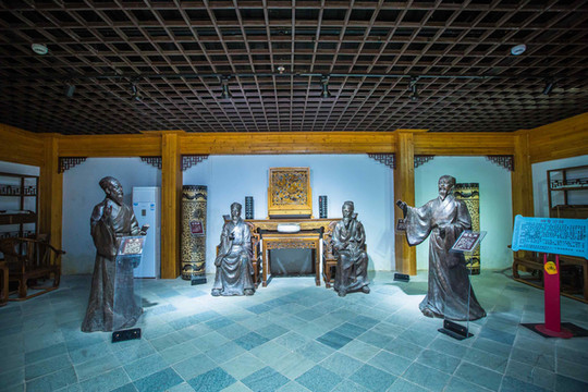书院里的石雕重现了“鹅湖之会”的场景。南宋淳熙二年(公元1175年),当时著名的哲学家吕祖谦、朱熹、陆九渊和陆九龄等人齐聚江西省铅山县鹅湖山鹅湖寺,历时三天进行了一场“理学”与“心学”的激烈交锋。