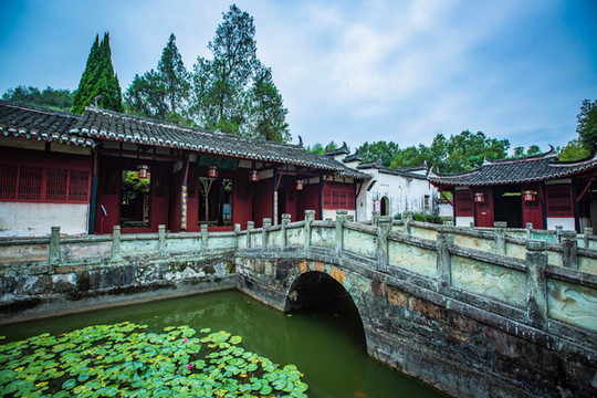 到过一些书院,发现书院的建筑规制有许多固定模式,比如它们总是和一池湖水、一座石桥配套。这桥的名字总是叫“状元桥”,状元桥也总有一样的吉祥寓意——从桥上走过,便能学业有成、金榜题名。桥下的池水碧绿幽深,不由得让人想起"荷尽已无擎雨盖,菊残犹有傲霜枝"的意境。