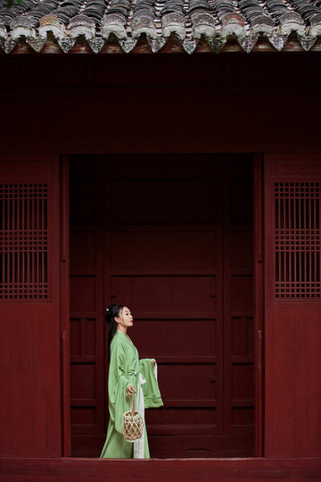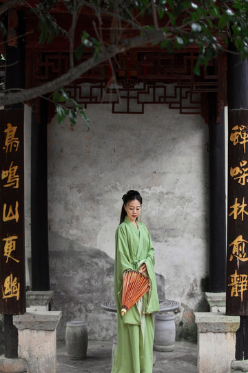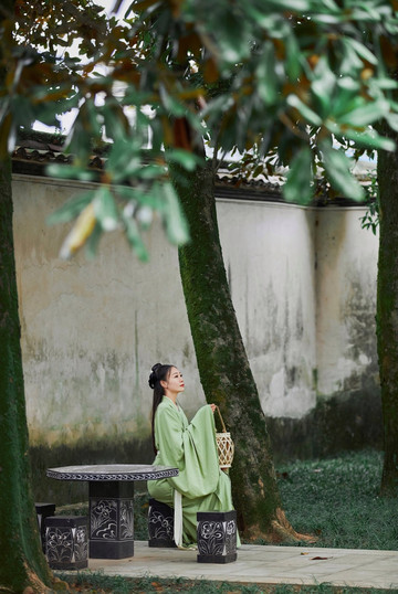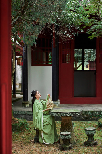 这里清幽的环境很适合拍汉服,我也是有所准备,穿了一身绿色的汉服前来。还记得上次去白鹿洞书院,我穿的是一件蓝白色的汉服,果真,书院与汉服是绝配。