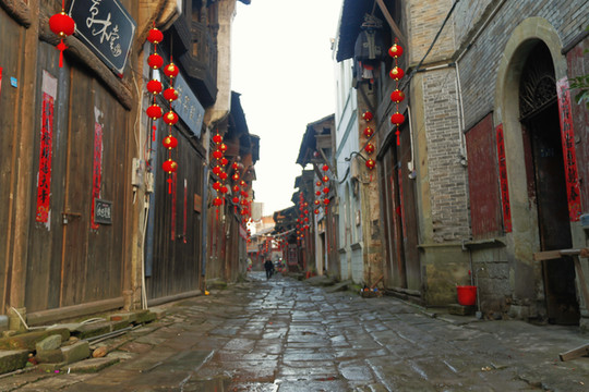 老街全长1500余米,纸、茶、布、药、酒;银楼、书局、邮局、当铺、戏台、会馆及手工作坊450余家。层楼蜿蜒,鳞次栉比,古老而典雅。