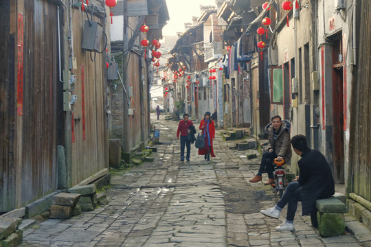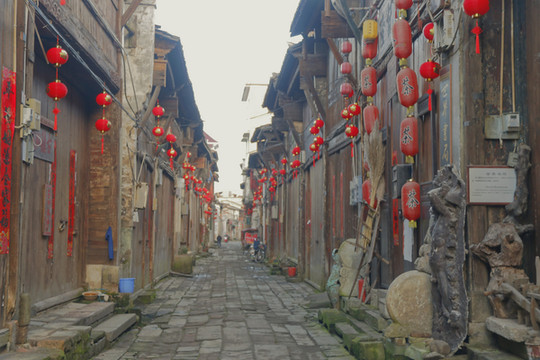如今,这里仍保留着旧时繁华的印记和古朴的风貌.沿河五米长的明清古街,层楼绵延,鳞次栉比,古老而典雅;青石板路面上的道道车辙,记录下当年小镇的繁荣。镇内小河蜿蜓迥转,一座座青石桥横跨两岸,增添了小镇的水乡情调。沿江码头的碑石上,字迹历历可见,令人回想起当年"货聚八闽川广,语杂两浙淮杨,舟楫夜泊,绕岸灯辉 " 之盛。