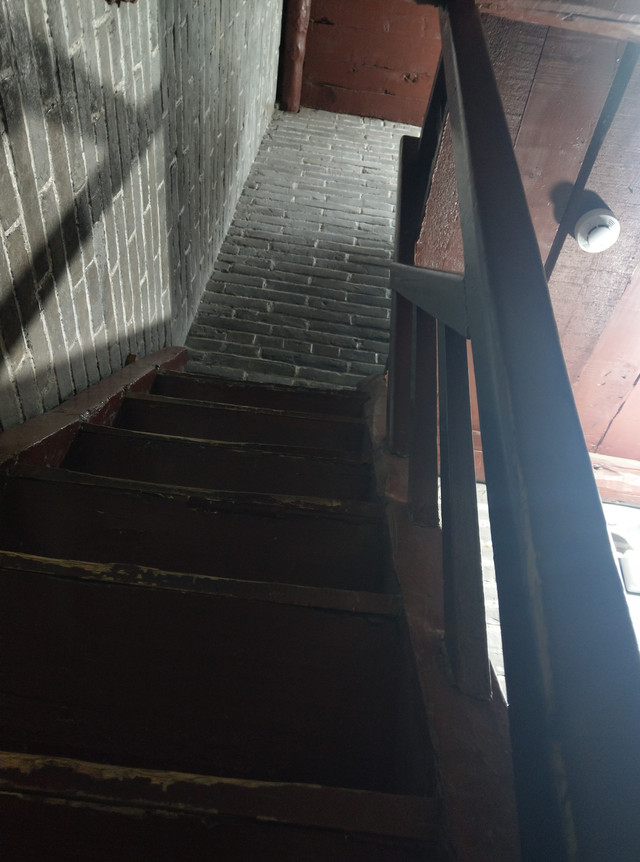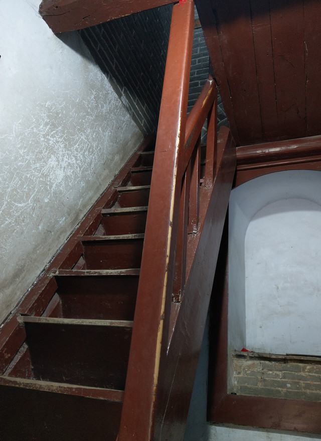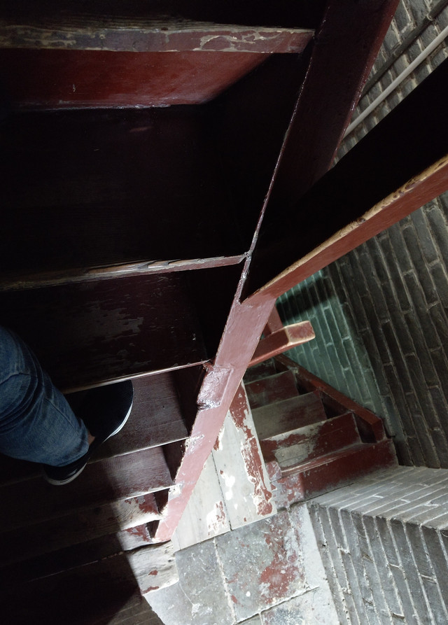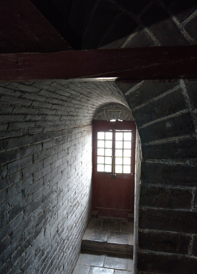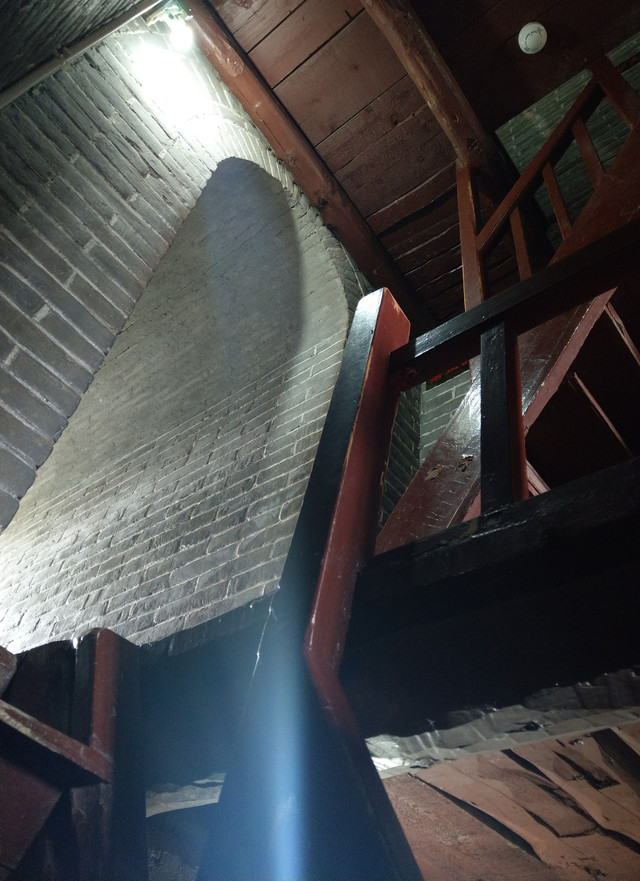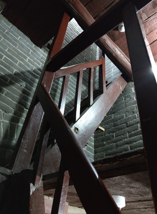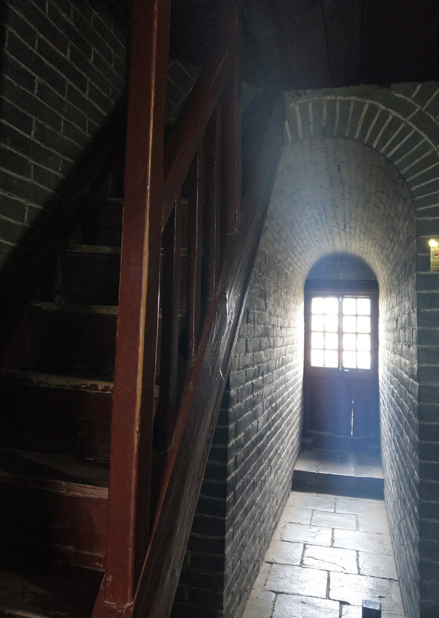 從塔外看去是那樣寬敞,內部卻狹隘的很,環繞式樓梯,僅大約一個人的寬度,如若這時有人交會時,那可得謹慎點,胖些,可能就得黏到牆壁上去了。