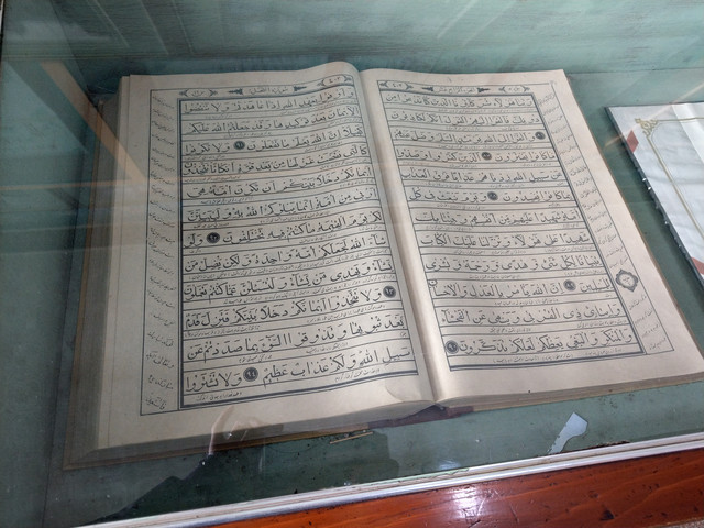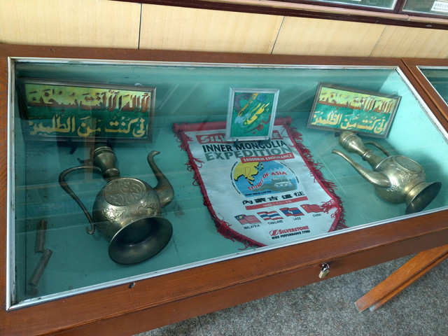 寺內不大,兩層樓建築,樓梯直上二樓,是做彌撒的地方;而一樓是展廳,牆上吊掛著伊斯蘭教的興起與教義,展櫃擺置各樣的宗教有關物品,以及各不同國家地區著名的朝拜清真寺模型等等,走在這空間之中,讓我回想起在土耳其的日子裡,那走在路上都會聽見固定時刻的叫拜聲,不時的迴盪著,空氣中瀰漫著一股莫名的舒心和祥和。