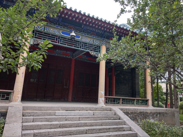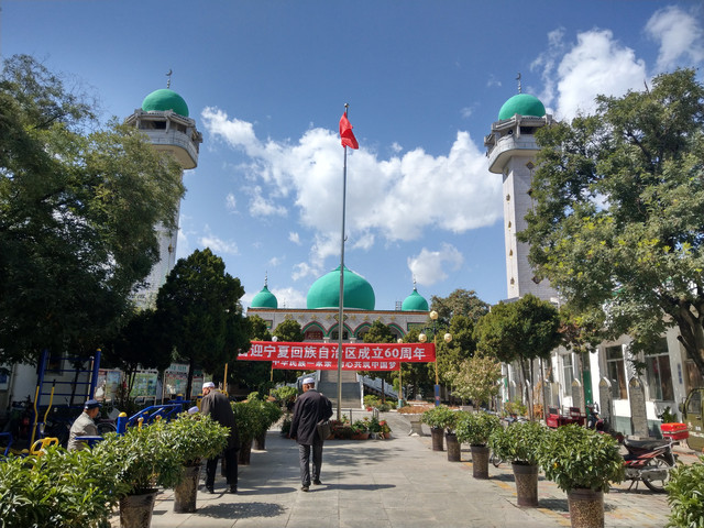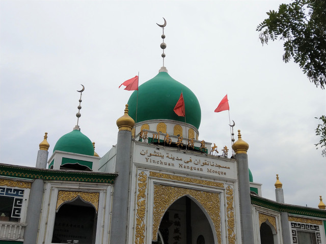 在興慶區裡,我全程以徒步代勞,景點與景點之間,說遠不遠,說近,也要走不少路,離開鐘鼓樓及玉皇閣後,繼續徒步前往南關清真寺,可惜我功課沒做足,居然遇到休息日沒有開放,由於明天就要前往中衛市,南關清真寺只能放棄了,拍拍建物外觀過過乾癮,再走到南門廣場搭29路回酒店。