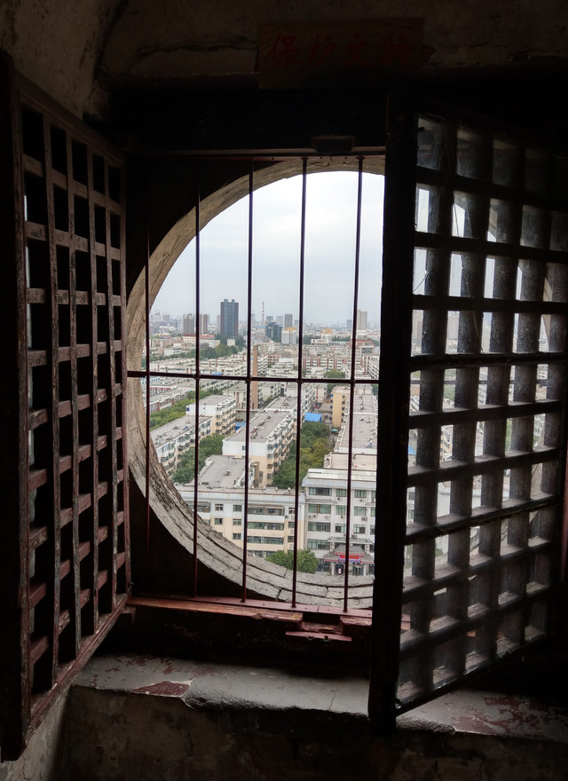 到了塔頂層,有四面窗,卻只有一兩扇窗可以打開,我俯瞰著市中心的樣貌,風吹過來很是舒服,於是我便在上頭待了好一會時間才下樓,途中有人下樓上樓,總是要扶好側邊把手或磚壁,才不致有種騰空感,沒想好不容易下到了地面層,竟有種飄忽腿軟的感覺。