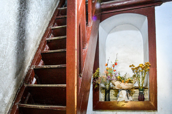塔内是木质楼梯,空间窄小,越向上楼梯越陡,最后面几层几乎像梯子一样快要垂直,