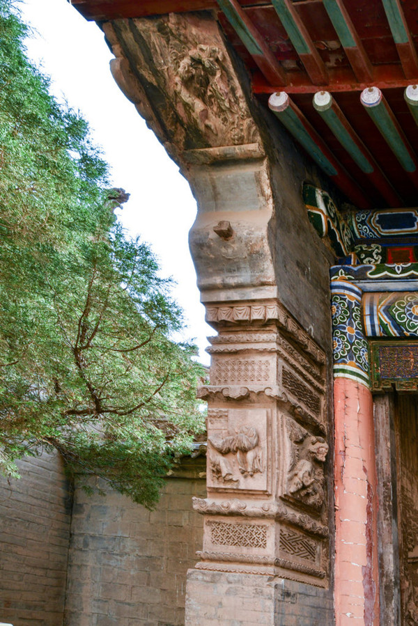在塔后有后殿的山门,有一部分还是清朝嘉庆年间留下的,可以看到当时留下的砖雕,但这些砖雕在时期遭到严重破坏,砖雕中人像和动物头部全被砍去了,其他的建筑都是改革开放后重修的。