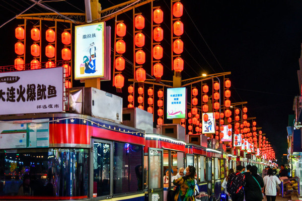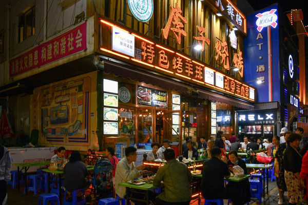 小吃摊、商铺整齐地排列在街道一旁,周围的商业圈也跟着完善成型。怀远市场,成为了银川真正的夜市品牌。