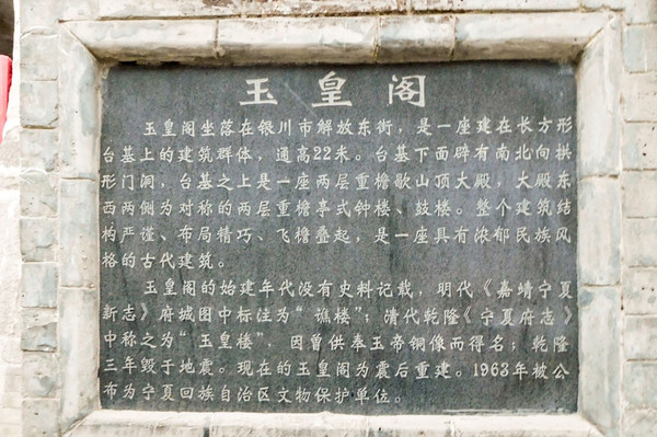 玉皇阁建筑风格独特,看惯了北京、西安壮丽的城楼、城门,再看看银川的建筑,就让人感觉格外的秀丽。1963年被公布为银夏回族自治区文物保护单位