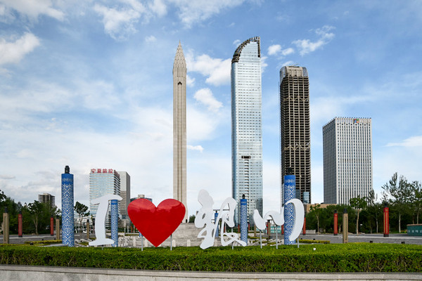 在老城鼓楼的正南,有一条步行街,名为鼓楼南街,两侧商户林立。这里是 银川 人口最稠密的地方,入口便是“爱心之城”雕塑,这里汇集了 银川 的各大购物中心