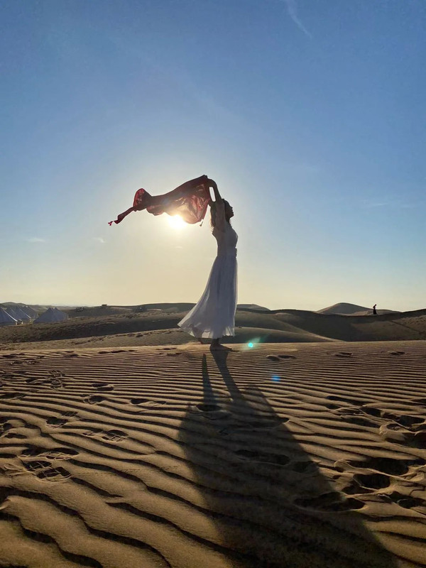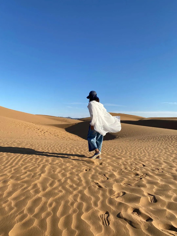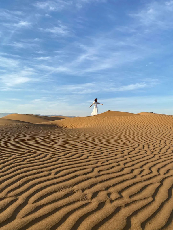 比阳光醒得还早的是祺妈,只要能美,大部分女人都是可以拼命的,也包括祺妈。祺妈为了乘祺小宝酣睡之际,溜出来多拍几张沙漠美照,早早就起来洗漱妥当,就等着摄影师祺爸了。