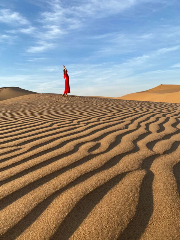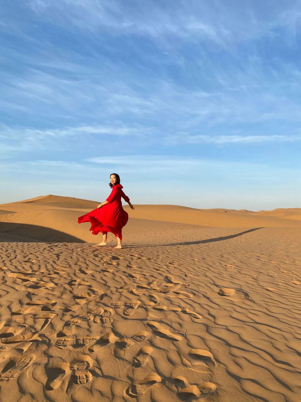 在祺妈很有仪式感的沙漠舞蹈中,我们结束了这次西北行的宁夏之旅,宁夏给我们带来的不仅仅是炙热的高温,还有厚重的历史和曼妙的风景,借用星星的故乡路标上的一句话“等风来,不如去追风”,我们继续上路,继续追风。