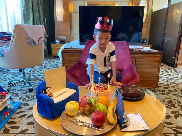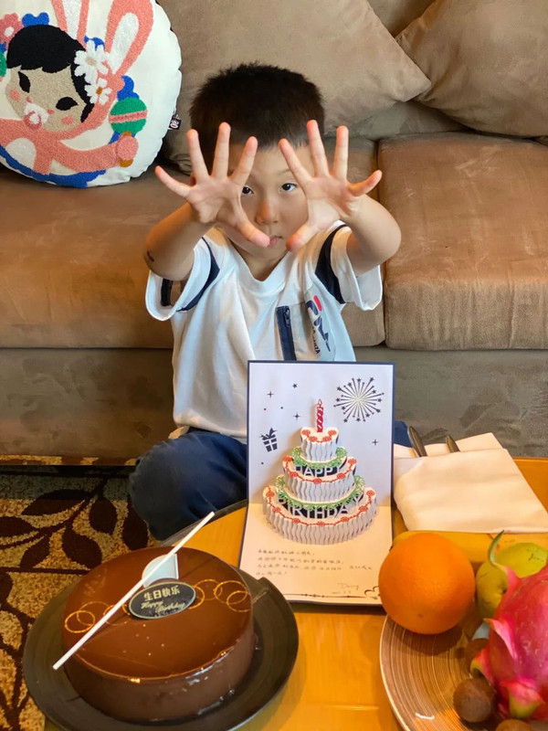 晚饭之后,前一天在酒店预定的水果蛋糕也收到了,祺小宝今天五周岁了。愿祺小宝健康成长!生日快乐!