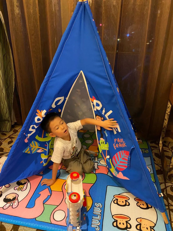 亲子主题房给设了个小帐篷,正好能让“十万个为什么”静音几分钟!