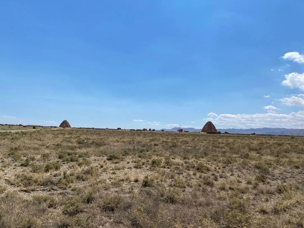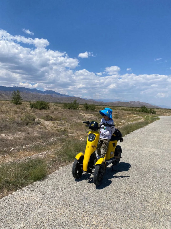 摆渡车只在博物馆和三号陵之间来回,从三号陵要到其他陵寝参观,除了走路,还有自行车和电瓶车可以租借,这两个租借点都在三号陵外面。夏日里的贺兰山,感觉热气扑面而来,说是烤包子一点不过分,因为风也是热的,似乎带着烤焦的味道。祺爸决定租个电瓶车,蹓跶一圈就赶紧走人。