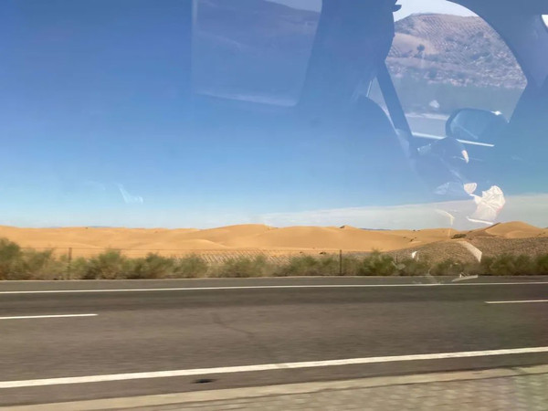 到沙漠边缘了,公路的两侧已经出现了沙丘。