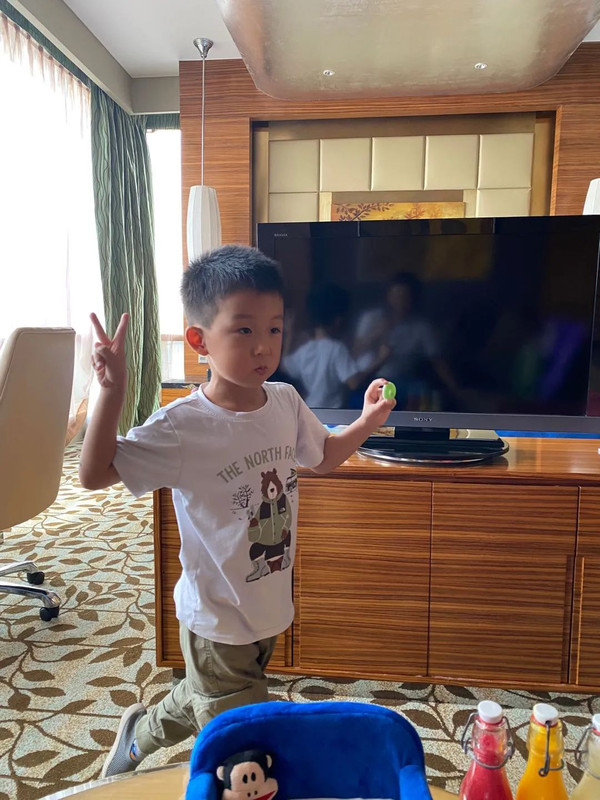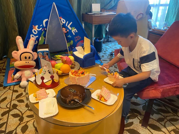 回到酒店房间,凯宾斯基酒店提前送进房间的巧克力生日蛋糕,一扫祺小宝和祺爸祺妈的疲惫,尤其祺小宝,眼里有光,那是食物带来的愉悦感!