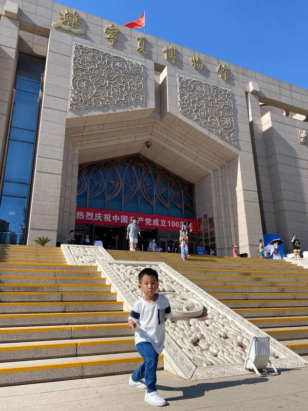 迅速逃离“热情过度”的镇北堡,回酒店时间尚早,祺爸临时决定带祺小宝去宁夏博物馆,至少政府的门面,不差钱肯定凉快!呵呵!