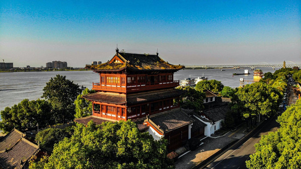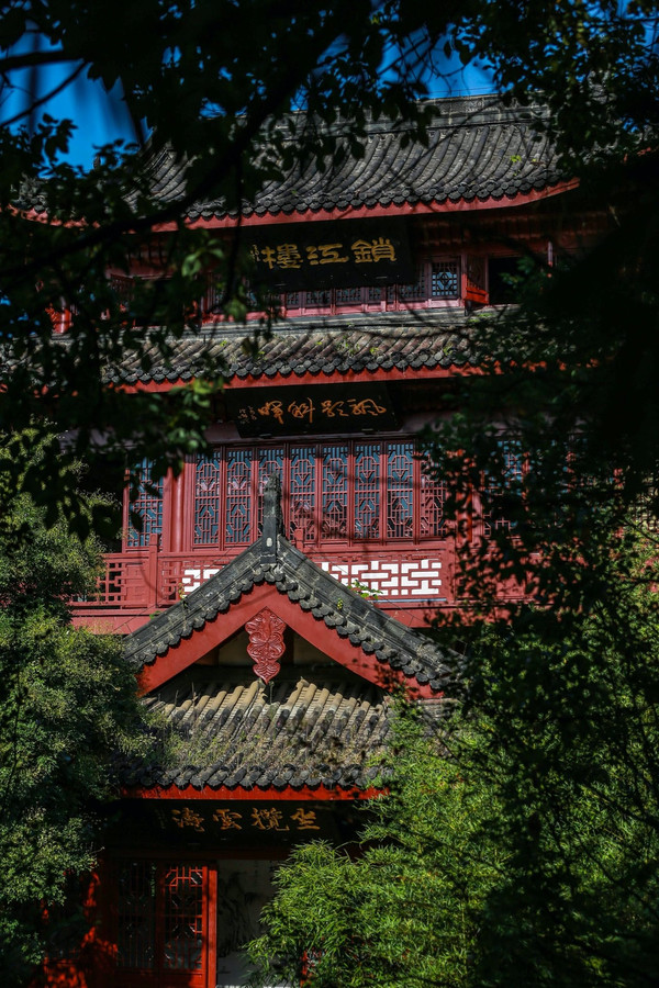 锁江楼位于长江之滨, 九江 市 东北 ,傲然屹立,高耸蓝天,潇洒古朴,伟岸气昂,塔影锁江,风雅微妙。