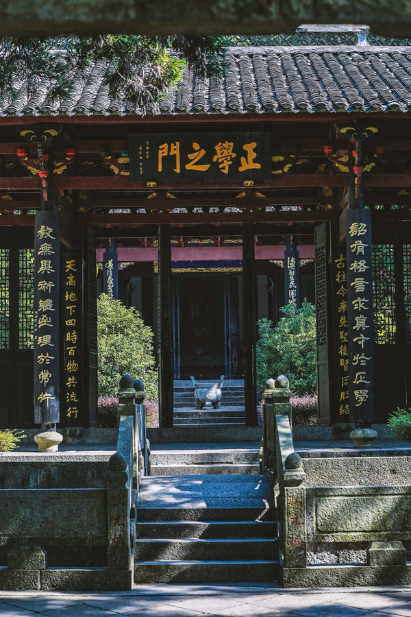 书院门内环境清幽,绿树成荫,在这里就读心情都静了下来了