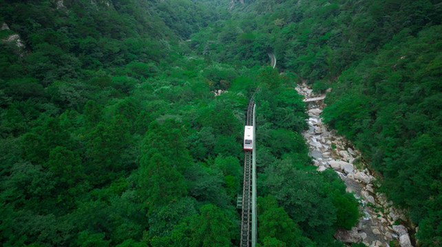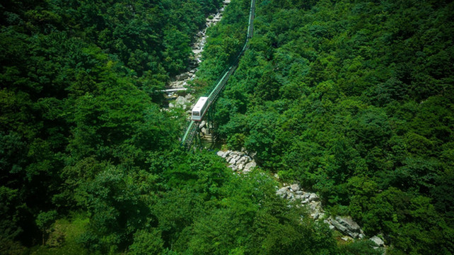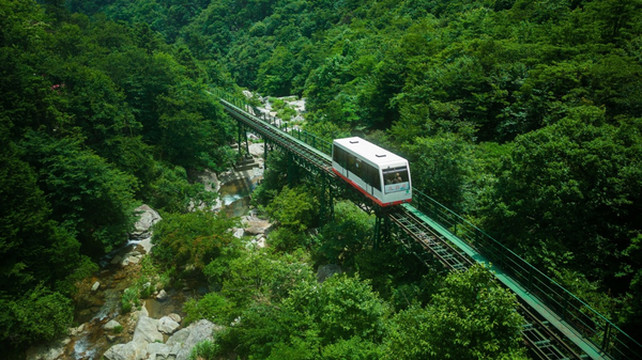 为让游客免去往返 3000 级台阶的辛苦,可以乘坐缆车穿梭于丛林间。小火车跨沟越溪,既可沿途观赏美景,又使原本艰难的步行变成了仅需 5 分钟的轻松之旅。