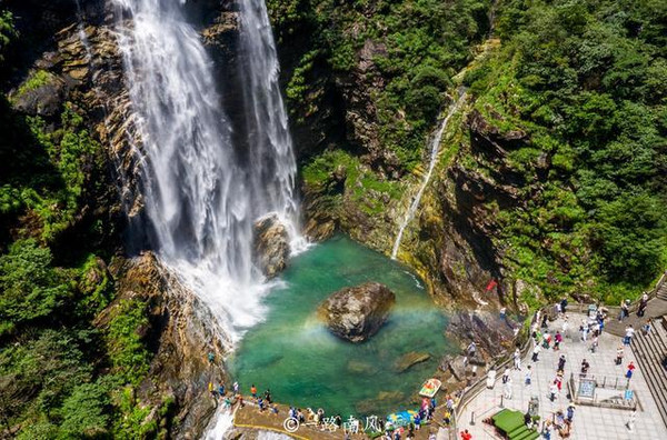 三叠泉景区位于庐山东南的九叠谷,集险峰怪石、飞瀑流泉于一身,它抛珠溅玉、气势磅礴,犹如龙腾虎跃,又好像银河倒挂于险崖之上,远观近看都非常壮观,自古享有“庐山第一奇观”的美誉, 同时被称为“世界上最壮丽、最优美的喀斯特瀑布”,民间一直有“未到三叠泉,不算庐山客”的说法,可见它的颜值有多么迷人。