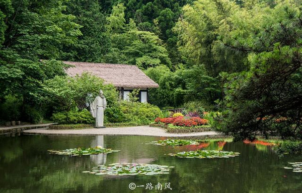 沿着旅游步道一直往前走就会看到白居易草堂,传说白居易当年被贬江州时曾在此居住,虽然只是一间陋室,但前有碧水环绕,后有绿树相护,环境清幽、雅致,这透露出白居易高雅的园林素养和美的洞察力。