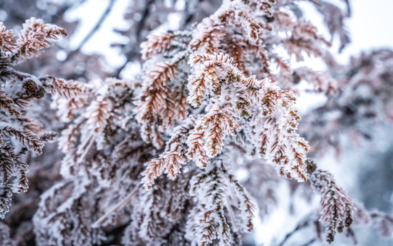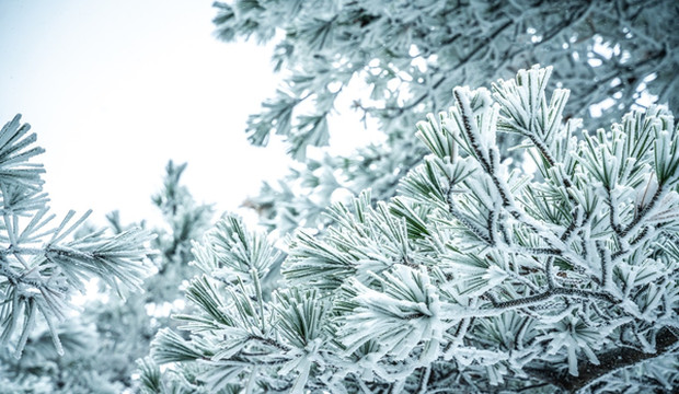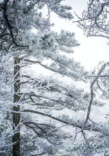 再稍往里走,就进入一片白色的森林,树干、树枝、树叶,包括地上全是雪白,风起处, 望江 亭对面的山坳升起雪雾,如梦如幻。森林的 玉树 琼枝间,绽放的全是银色花瓣,“树挂”、“雾淞”、“冰塔”、“空山泉音”是属于 庐山 的冬天。