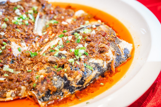 餐桌慢慢转动,一盘硕大的白浇雄鱼头被小心翼翼地端上桌,对 九江 菜的认识就从这道菜开启。说是“白浇”,实则并非颜色清淡,反而料汁色泽浓重。这道菜历史悠久,起源于朱元璋时代,后经历代名厨改良,成为 九江 传统鱼宴名菜。
